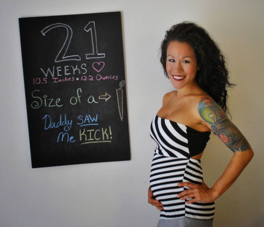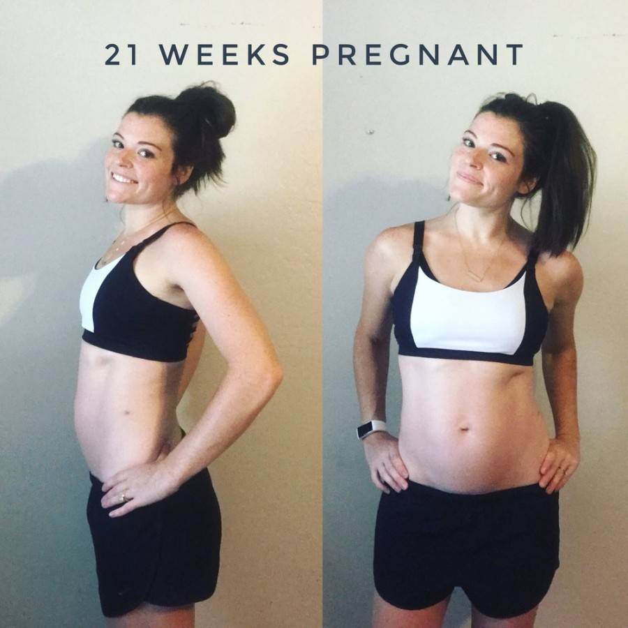 Живот на 21 неделе беременности существенно увеличивается. В этот момент уже можно визуально наблюдать за тем, как ребенок толкается и ворочается в матке. Также можно заметить в каком положении находится кроха и отчетливо увидеть очертание ручек и ножек, которыми он отталкивается от матки.