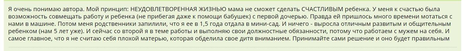 Здесь хоть и идет речь о раннем детском саде, но суть не меняется: нанять няню ребенку не значит быть плохой матерью.