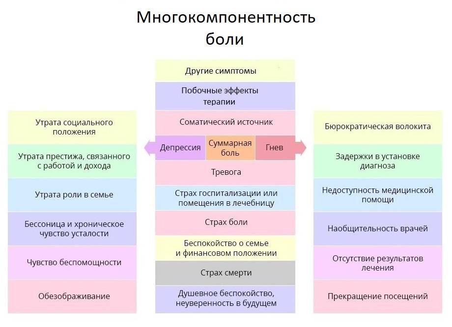 ВОЗ даже ввела для этого специальное понятие: суммарная боль. Она охватывает не только физические раздражители, но и эмоциональные и социальные негативные аспекты жизни пациента