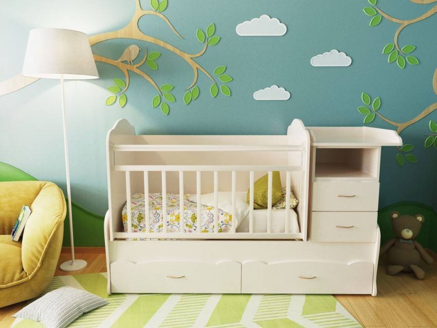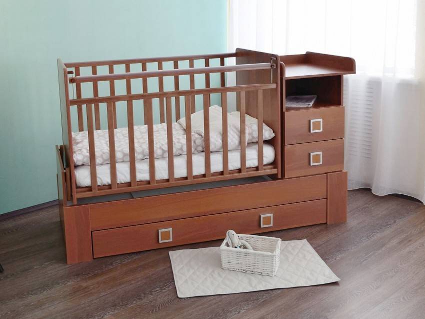 Здесь нужно смотреть на наличие пеленального столика, ящиков и полок, раскладного дна и других элементов. Какая кровать для новорожденных по функционалу будет лучше, должны подобрать родители, исходя из целей и особенностей использования.
