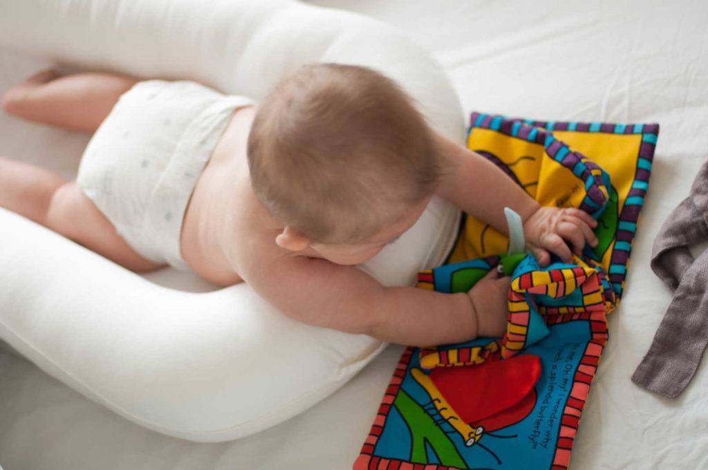 С изделия удаляется наволочка, после чего малыша помещают спинкой на матрасик. Головка ложится на участок, который сужается к основанию. При необходимости, положение ограничителя можно изменить. Находиться должен под попой ребенка для того, чтобы тельцем малыш не сполз вниз. Ножки слегка приподняты, что не позволит отталкиваться от бортиков ножками. После ребенок берется на ручки, а чехол надевается на прежнее место.