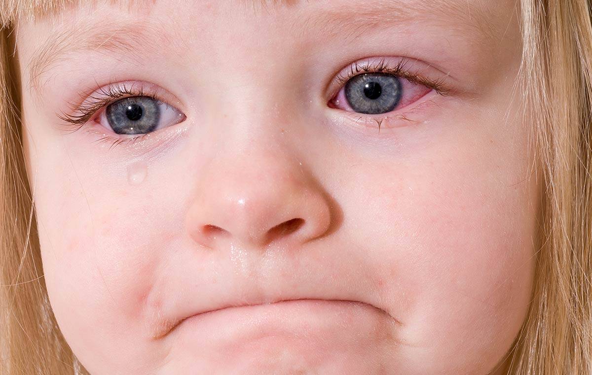 Характерными симптомами аллергического конъюнктивита являются светобоязнь, жжение и зуд, из глаз малыша все время текут слезы. Но, как и вирусный, он может сопровождаться насморком.