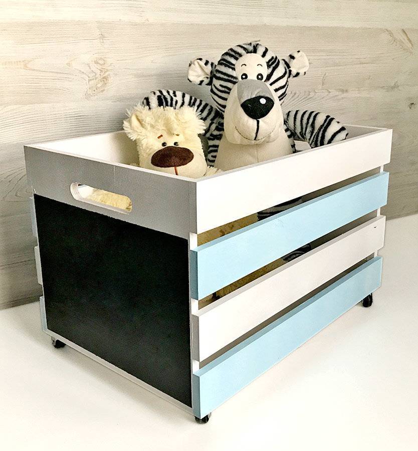 Возвращаясь к теме старых ящиков и коробок. Их можно поставить на колеса и сделать мобильными. Этим вы облегчите ребенку задачу сбора игрушек.