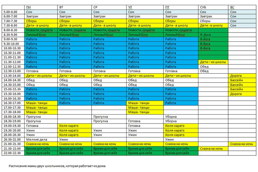 Начиная со второго месяца, моя подруга поняла, что пора переставать плыть по течению, а нужно начинать планировать каждый день, если она хочет все успевать.