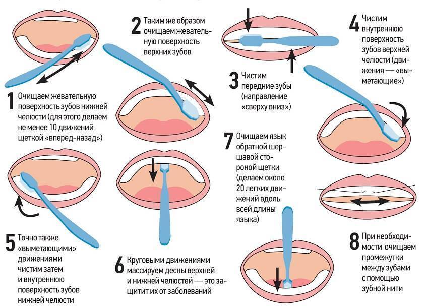 Порядок действий чистки зубов у детей выглядит следующим образом: