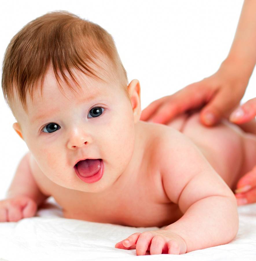 - Ребенок лежит на животе. А вы поглаживаете, растираете, «пилите», пощипываете, постукиваете мышцы вдоль его позвоночника – мышцы спины и ягодиц. Начинать и заканчивать массаж нежными поглаживаниями.