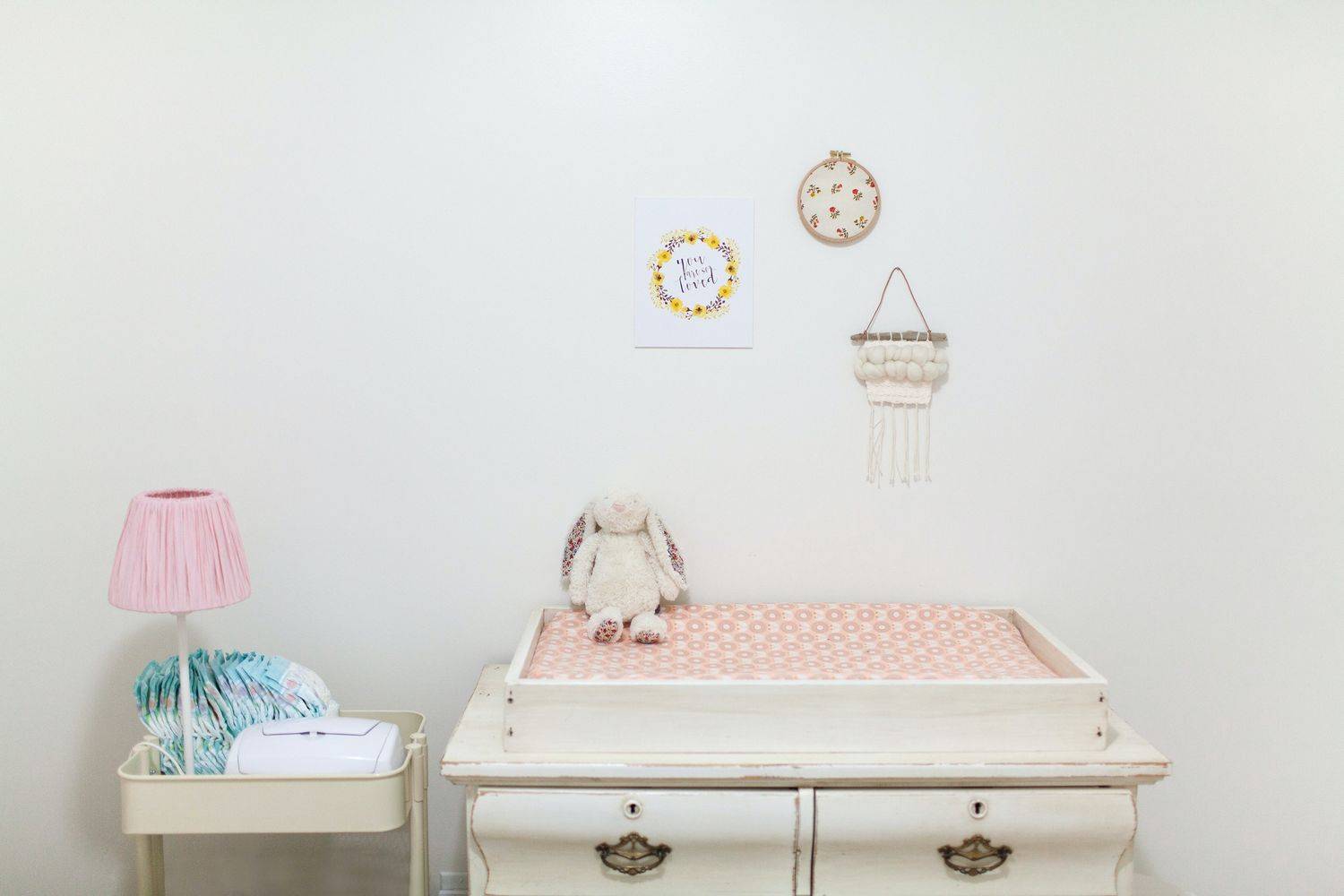 Помимо кроватки, дизайн комнаты для новорожденного, фото которого можно найти на различных сайтах, должен включать столик для пеленания и тумбочку (комод) для детских вещей. Эти два предмета мебели можно совместить, заменив их комодом с пеленальной доской, которую можно приобрести отдельно. Комод успешно используется для детских вещей и косметических средств для ухода за малышом, а доска располагается сверху. Это является отличным вариантом для небольших жилых помещений.