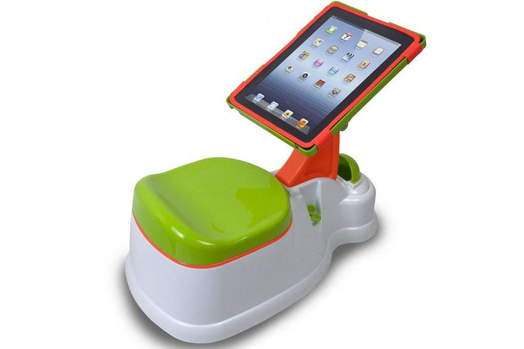 Сотрудники нашего портала не являются сторонниками навороченных горшков для детей, но мы не можем не представить вашему вниманию горшок для детей нового поколения: Ipotty горшок с подставкой для планшета iPAD от компании СTA Digital. Стоит это чудо-устройство боле 40 долларов. Мир увидел его в 2013 году на выставке потребительской электроники в Лас-Вегасе.