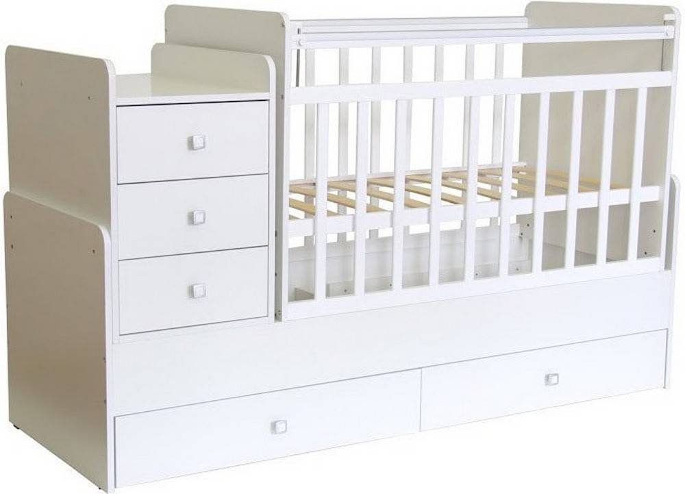 - трансформер – совмещает в себе функции спального места, комода, пеленального стола, а со взрослением ребёнка может переформироваться в школьную парту. Набор функций зависит от конкретного производителя. Использоваться может до 7-12 лет;