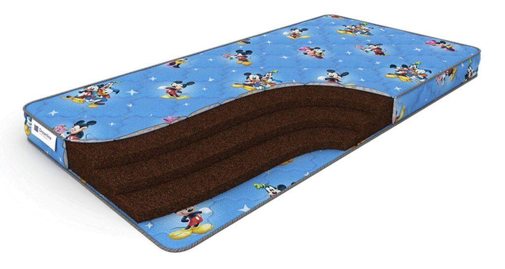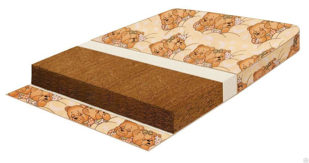 Одним из лучших решений для новорожденного является кокосовый матрас. Материал наполнителя отличается натуральным составом, влагостойкостью и хорошей вентиляцией. Он не задерживает запахи и обладает необходимой степенью жесткости. Но свойства матраса напрямую зависят от качества производства. Недобросовестные производители соединяют волокно с помощью прошивания, что приводит к крошению сырья.