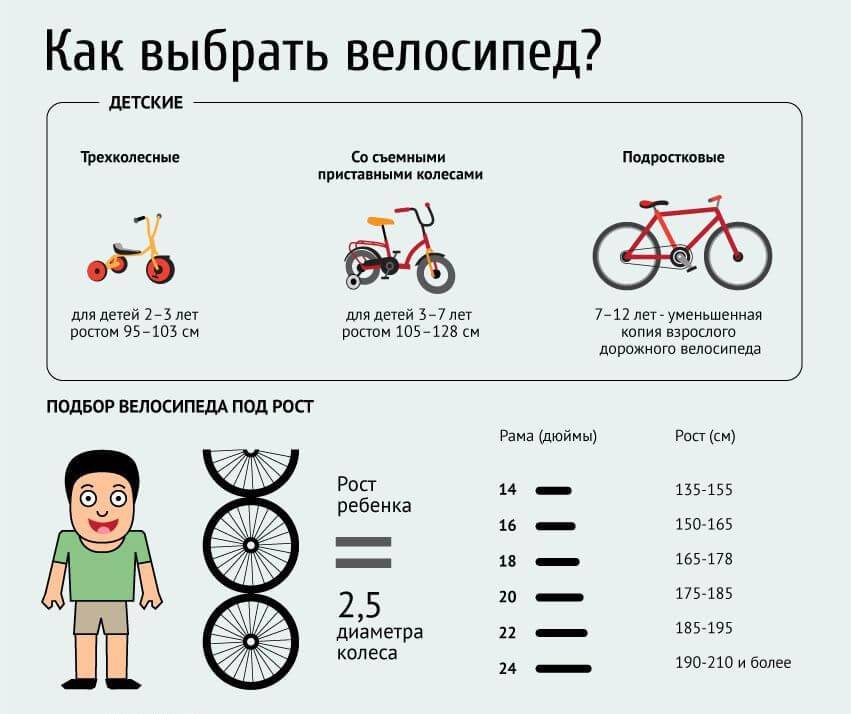 Более-менее точно подобрать модель под рост ребенка вам поможет диаметр колес: