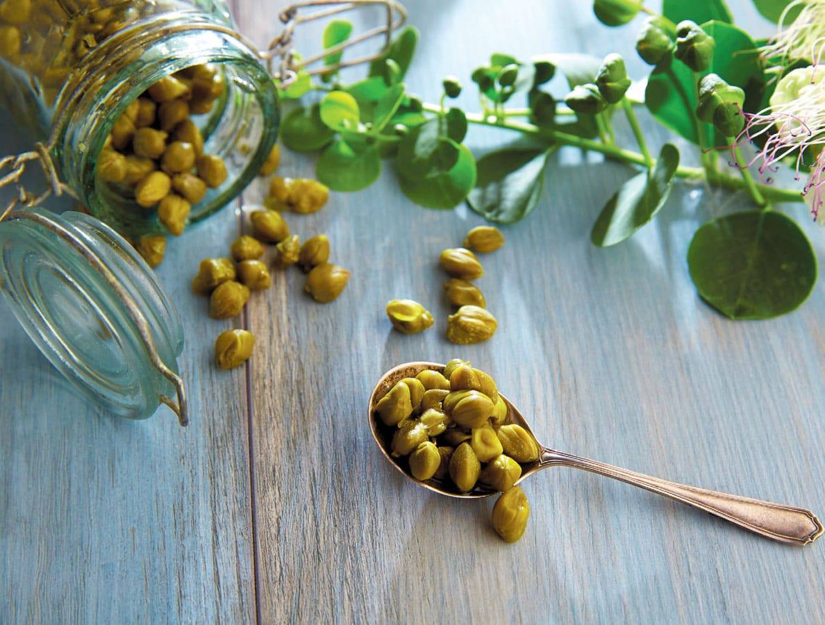 Коробочки настурции могут стать заменой каперсам из-за лечебных свойств. Настурция, как и бутоны каперсника, повышает иммунитет, очищает кожу, способствует нормальной работе организма. Для заготовок берут семена из семейства Каперсовых, бутоны должны быть плотными, упругими.