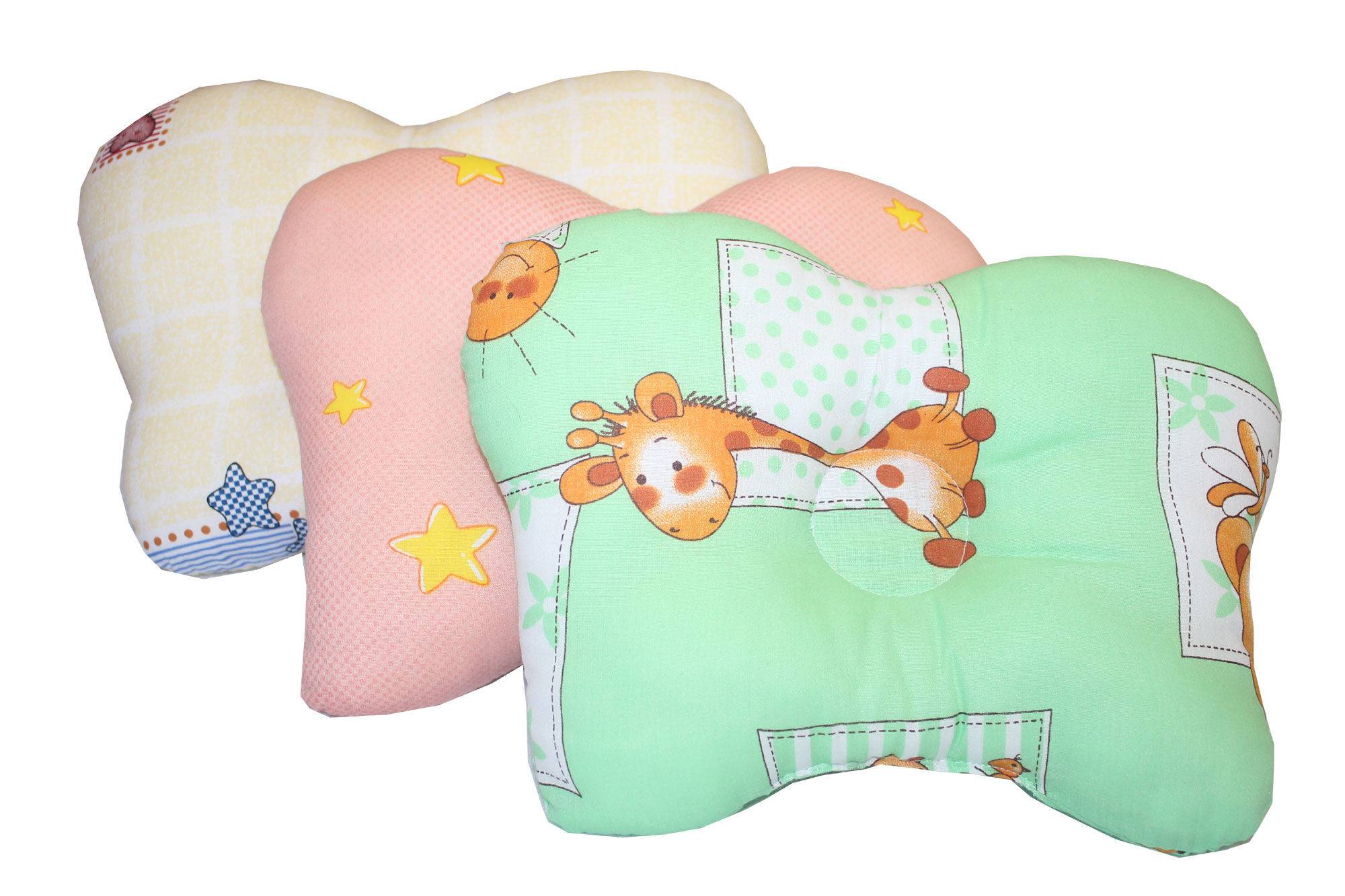 Такая подушка считается идеальной для профилактики появления кривошея, так как голова получает опору сразу в нескольких точках. Поскольку кости черепа у грудничка очень мягкие, такая подушка поможет избежать асимметрии в форме, достигается равномерное распределение нагрузки.