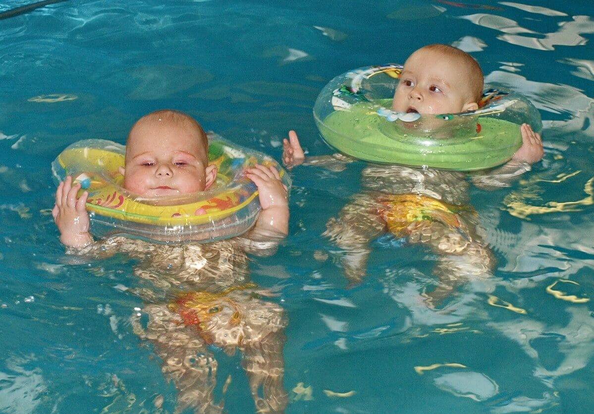 - с месячного возраста мальчиков и девочек можно обучать плаванию дома или в бассейне в специализированном круге, способствующем укреплению мышц.