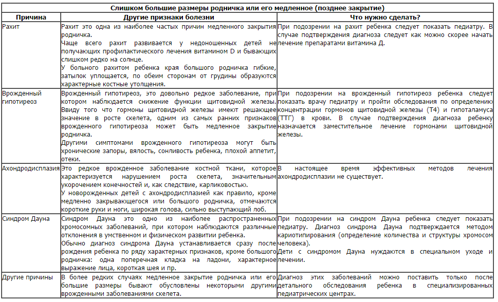 Что означает слишком большой родничок или медленное (позднее закрытие) родничка