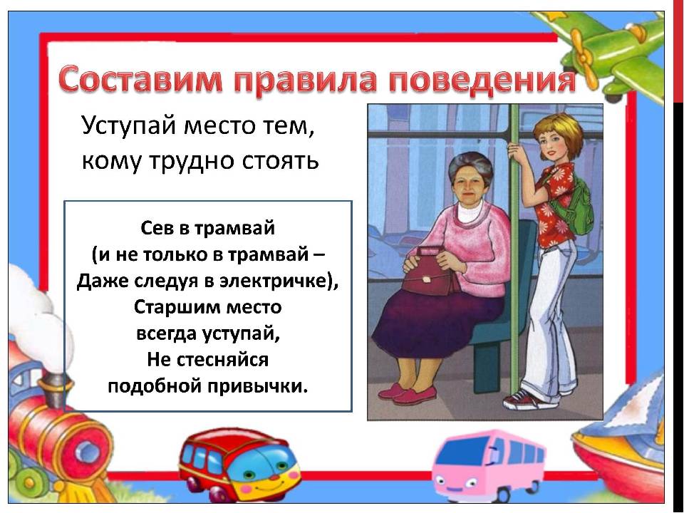 - При посадке в общественный транспорт, пропусти вперед себя женщин, стариков, детей.