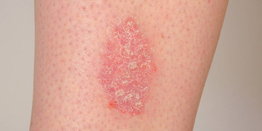 Псориаз — хроническое аутоиммунное заболевание, при котором высыпания чаще всего локализуются на локтях, голове, коленях и в паху. Сухие розовые пятна, покрытые белыми чешуйками, — очаги хронического воспаления. Под влиянием внутренних аутоиммунных процессов клетки эпидермиса делятся в несколько раз быстрее, чем нужно. В результате постоянно отделяются мелкие чешуйки из отмирающих клеток кожи.