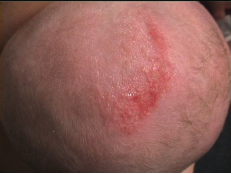 Эрозивный пустулезный дерматоз волосистой части головы развивается у детей с перинатальной травмой кожи головы.
