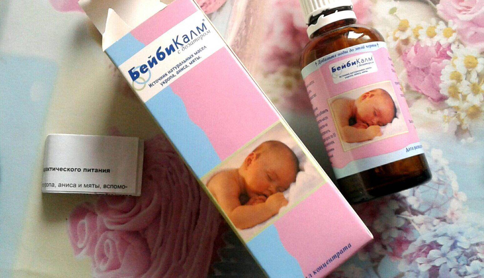 - «Бейби Калм» (Бебикалм). Израильский препарат, созданный на основе растительных масел: мяты, укропа и аниса. Маслянистую смесь разбавляют охлажденной кипяченой водой, налив до отметки на флаконе. Полученную эмульсию капают по 10 капель малышам в ротик перед каждым кормлением. Флакон с готовой смесью держат в холодильнике. Аналогом является “Хэппи-бэби”.