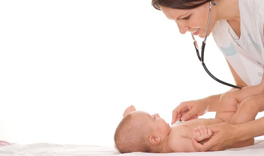 Врач слушает дыхание и биение сердца ребенка, чтобы гарантированно исключить возможные врожденные и наследственные патологии.