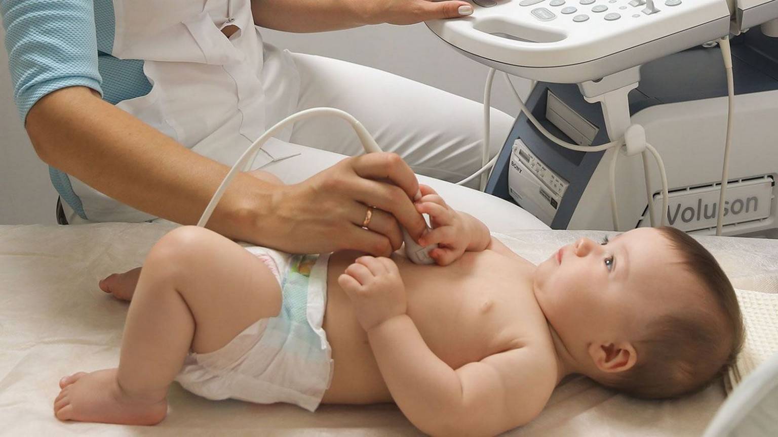 - Произведет пальпацию живота младенца, чтобы обнаружить наличие припухлости, почувствовать, что лимфатические железы брыжейки увеличились в размере;