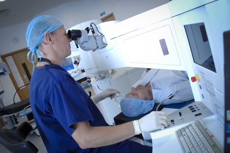 - Фоторефракционная кератэктомия – с помощью лазера удаляется верхний слой роговицы и изменяется ее кривизна (два глаза можно оперировать только поочередно, восстановление зрения занимает не менее полугода).