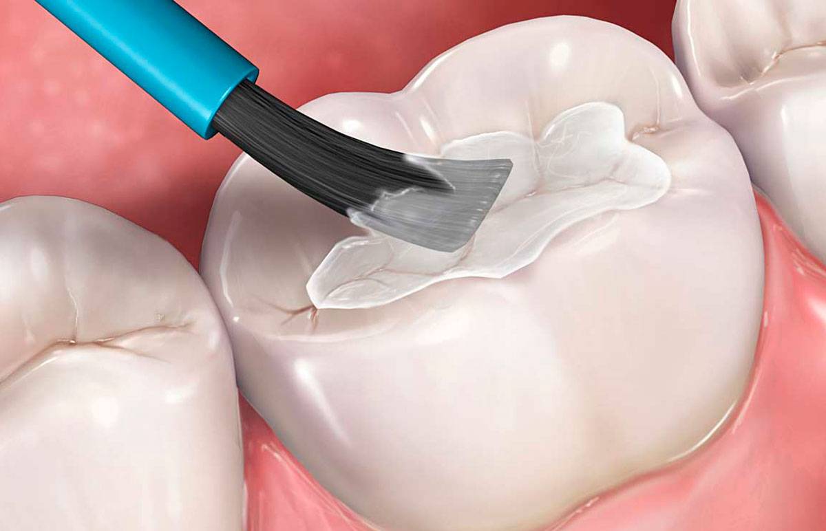Суть фторирования заключается в том, что зубную эмаль насыщают фтором — веществом, которое снижает чувствительность зубов, укрепляет эмаль, делает ее менее восприимчивой к негативным внешним воздействиям.
