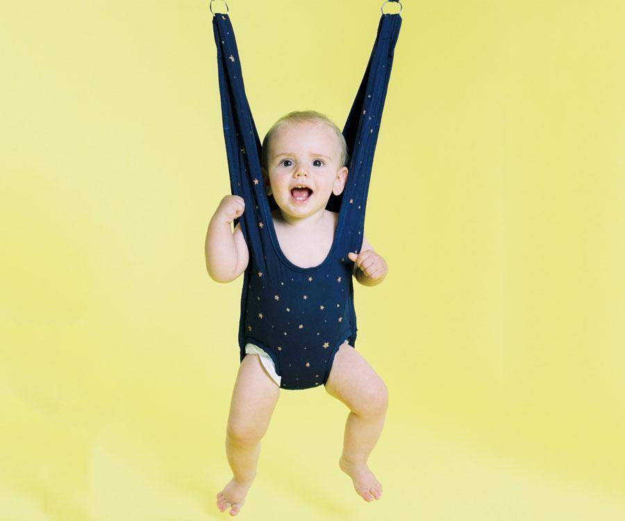 - Если ребенок расслаблено повисает, свешивая голову на грудь, значит, он устал, и его нужно вынимать из прыгунков.