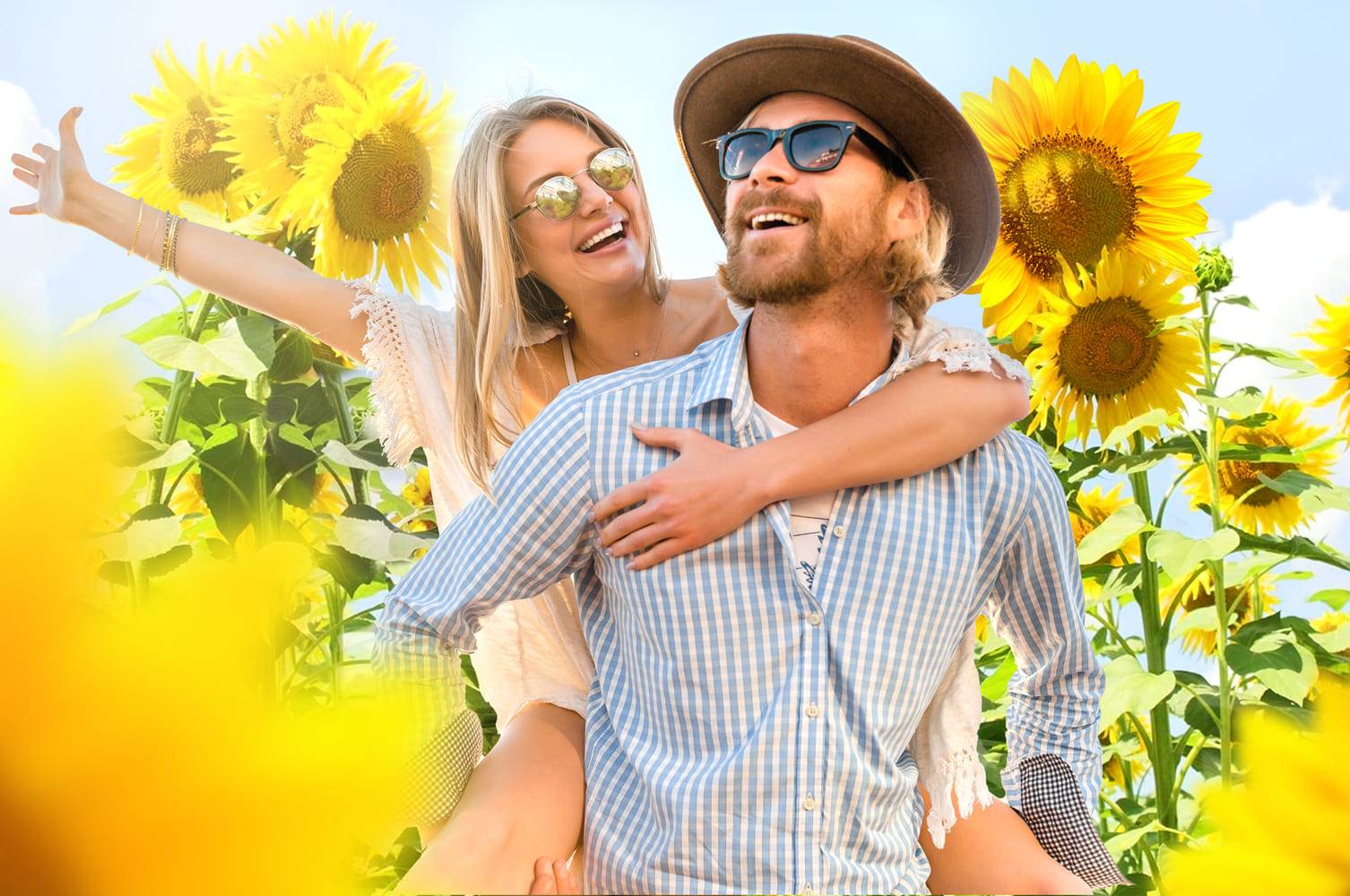 Люди среди подсолнухов