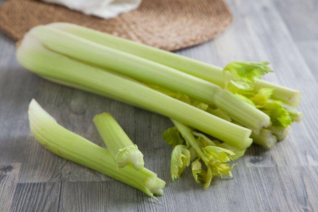 Стебель сельдерея зелёного цвета, сочный и нежный. Его чаще всего едят в свежем или тушёном виде, а также маринуют, солят. Популярностью у сторонников здорового образа жизни пользуются смузи с добавлением свежих стеблей сельдерея. Продукт отличается низкой калорийностью (всего около 18 ккал на 100 г), при этом содержит клетчатку и богатый набор витаминов и минералов.