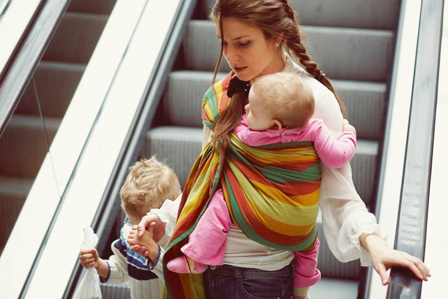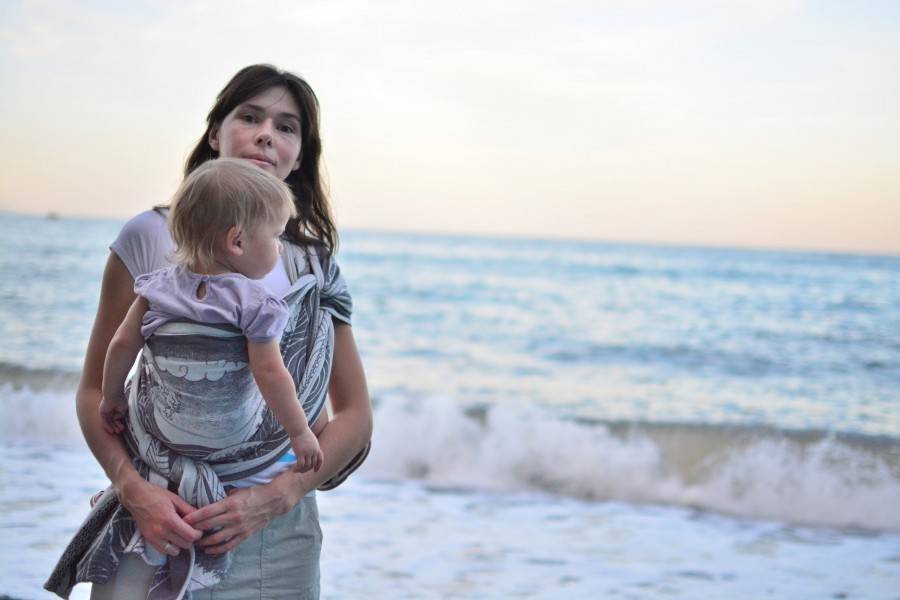Мама может уставать. Несмотря на то, что центр тяжести при ношении ребенка в слинге не смещается, нагрузка на ноги и спину мамы все равно увеличивается.