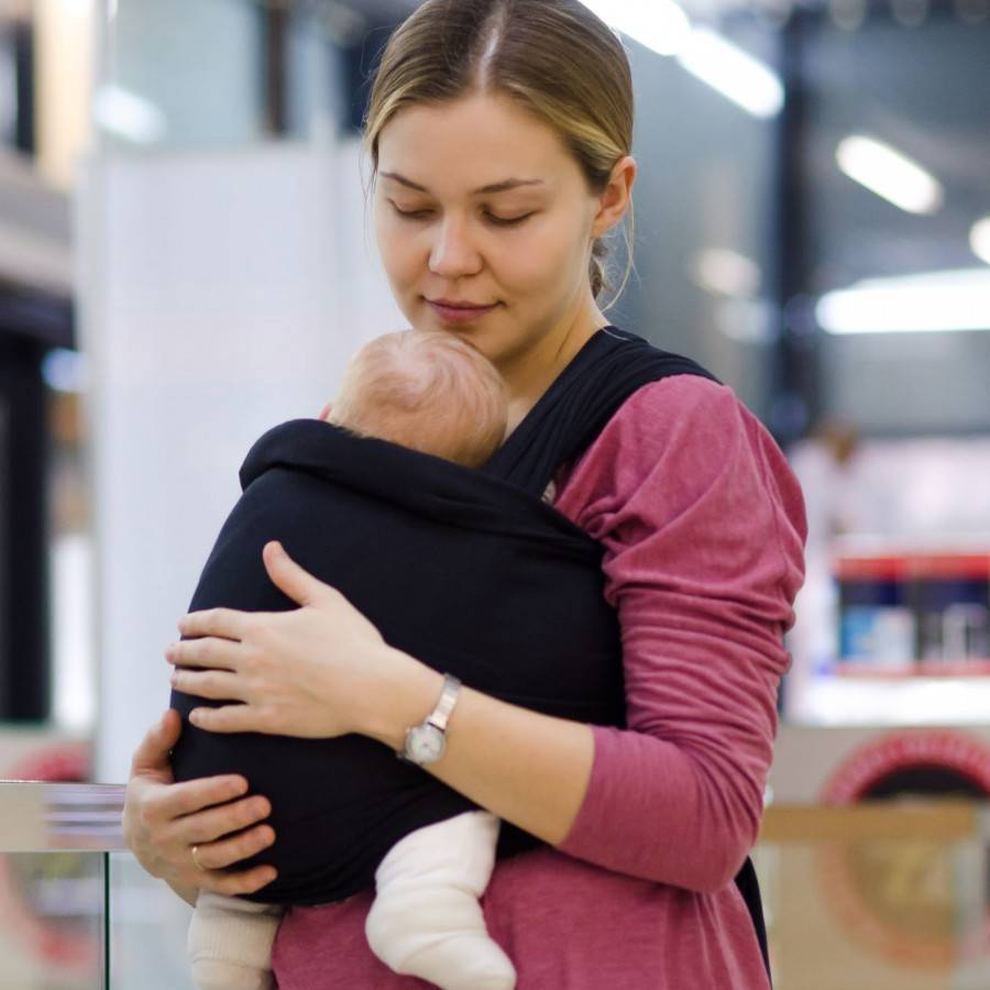 Шарф Кенгурушка плотно прижимает ребенка к телу мамы, оставляя ее руки свободными, поэтому сильно облегчает жизнь женщины в первые месяцы после родов.