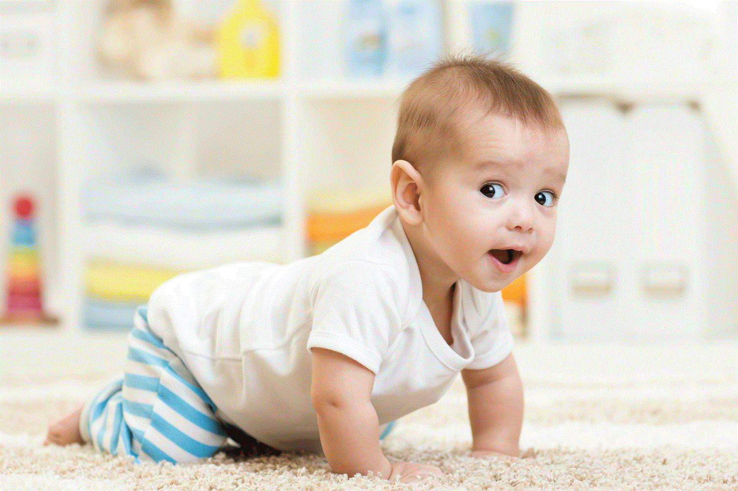 - В 9 месяцев малютка уже ползает, выделение слюны уменьшается, но прорезывание зубов все еще может стимулировать слюнотечение.