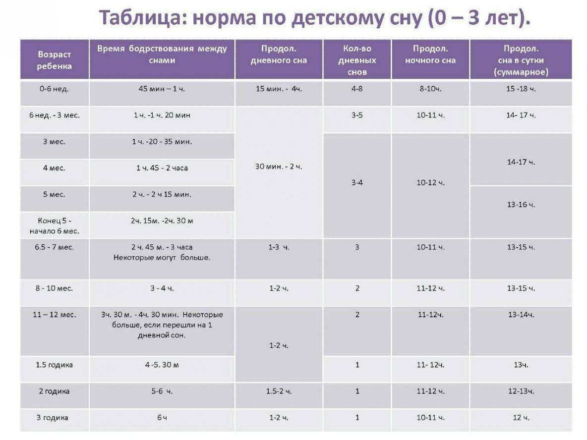 Длительность дневного сна и количество укладываний зависит от возраста: