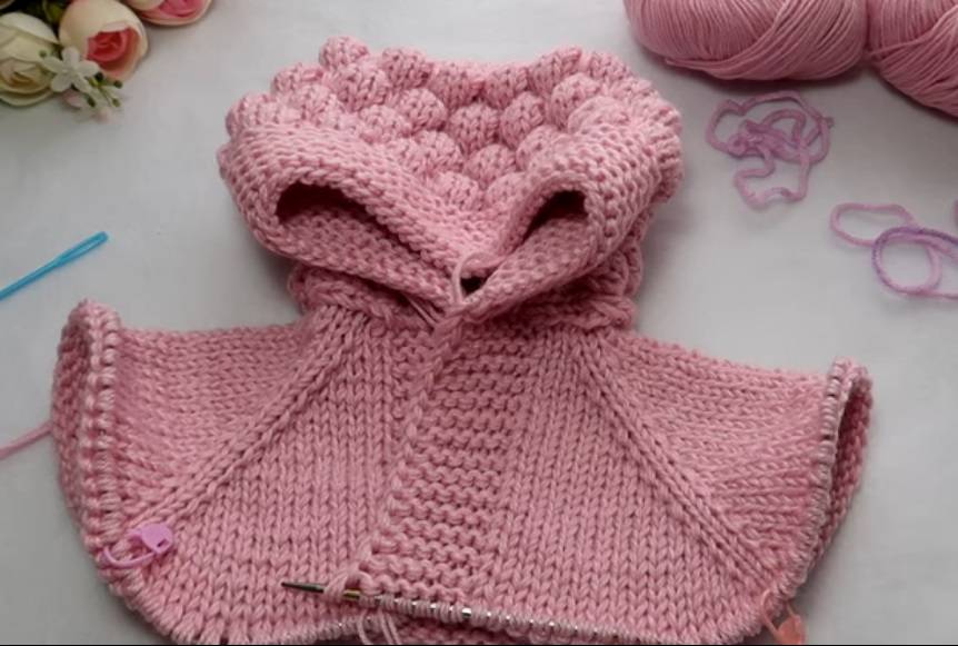 - Приступить к деталям, набирая по горловине петли для капюшона.