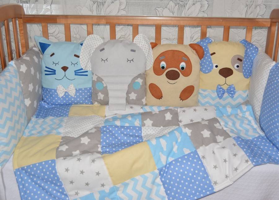Подходящие цвета для детской кроватки – белый, бежевый, желтый, голубой и светло-розовый. Для малышей можно приобретать одеяльца с простыми рисунками, входящими в один тон с основной тканью: для мальчика подойдет изделие с изображением самолетиков или машинок, а для девочки – с цветочками или бабочками. Также можно выбрать покрывало унисекс, если вы еще не знаете пол ребенка – с сердечками, животными или отпечатками лап.