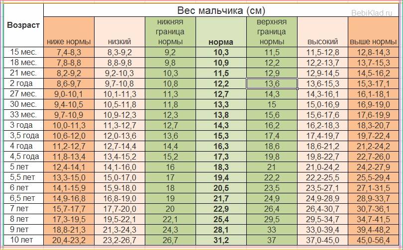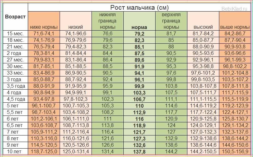 Таблица роста и веса для мальчиков от 1 до 10 лет