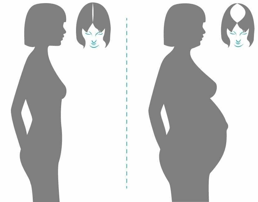 Следует отметить, что во время вынашивания ребенка процесс обновления локонов приостанавливается: в обычный период жизни прошедшие все этапы своего развития волоски выпадают и сменяются новыми, тогда как при беременности выпавшие пряди практически перестают обновляться. Именно поэтому при усиленном выпадении волос прореживание шевелюры становится более заметным.
