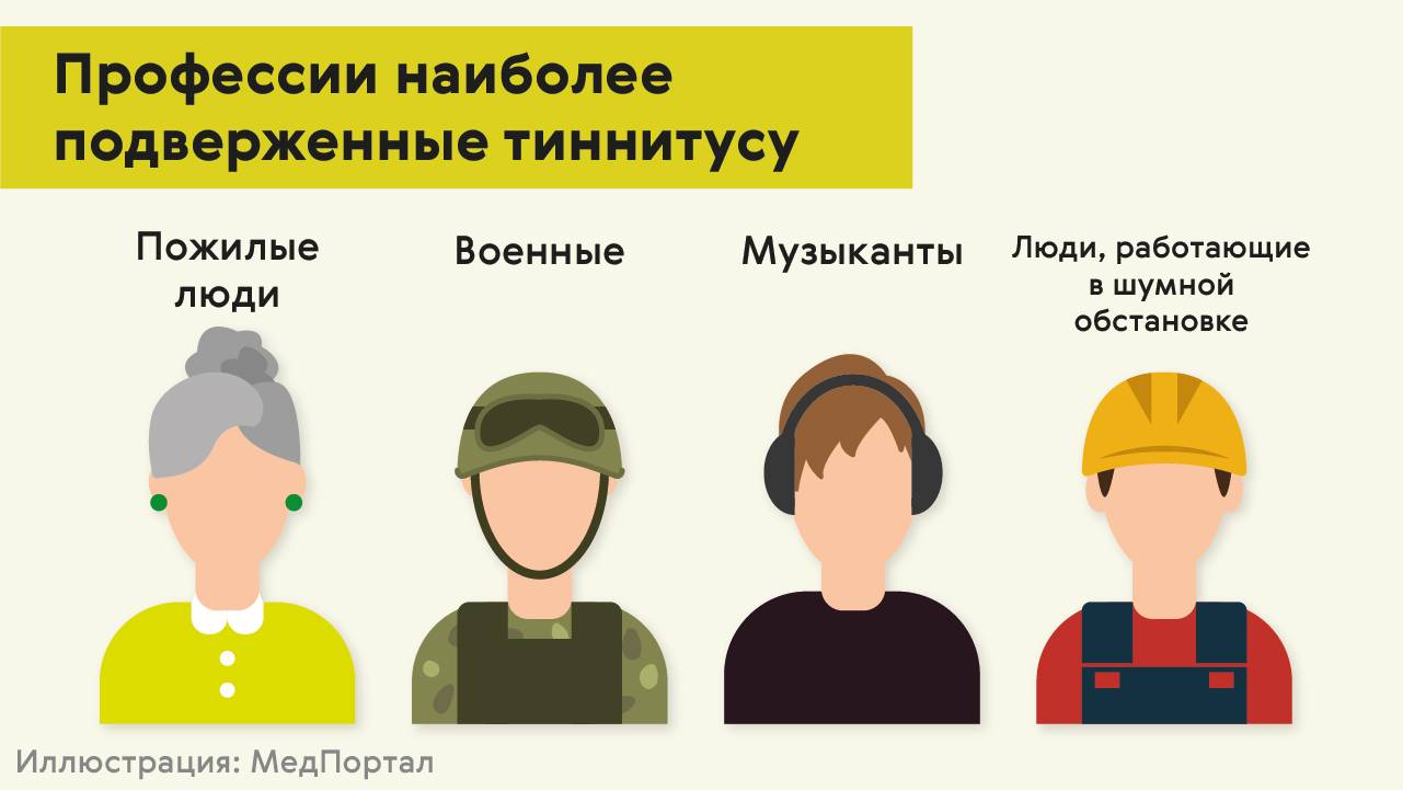 Рисунок 2. Наиболее часто тиннитус может встречаться при некоторых условиях и профессиональных областях.